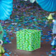 Art Deco geometric tapet mönster i skuggor av turkos, blått och blek grönt på djupa gröntar