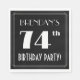 Denna 20-årsjubileum inspirerade till 74-årsjubileum med papper napkin-design i anpassade namn, ett finare art deco-utseende inspirerat nummer "74:e", meddelandet "FÖDELSEDAGSFEST!" och ett gräns med flera linjer. Den har som standard en bakgrund med svart färgad, men kan anpassas till ett annat färg om så önskas. Pappra servetter som dessa kan användas när man firar någons 74-årsdag. [~Z0000612]