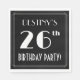 Den här eleganten och de tjugonde roddarna inspirerade den tjugosjätte födelsedagsfestens pappra napkindesign har en personlig namn, ett finare art deco-utseende inspirerat nummer "26:e", budskapet "FÖDELSEDAGSFEST!" och ett gräns mönster som består av linjer. Den har som standard en bakgrund med svart färgad, men kan anpassas till ett annat färg om så önskas. Snyggt pappra servetter av det här slaget kan användas som värd för en födelsedagsfest för någon i firande på deras tjugosjätte födelsedag. [~Z0000612]