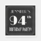 Den här eleganten och 1920-talet/1930-talet inspirerade stil till 94:e födelsedagsfest/firande papper napkin-design med en redigerbar namn, en finare art deco stil inspirerade nummer "94:e", meddelandet "FÖDELSEDAGSFEST!" och ett gräns med flera linjer. Det finns som standard en bakgrund med svart färgad, men den kan anpassas till ett annat färg om så önskas. Pappra servetter som dessa kan användas i party för någon som firar sin 94-årsdag. [~Z0000612]