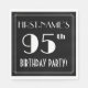 Under 1920-talet/1930-talet inspirerade stil till 95:e födelsedagsfestens pappra napkin-design med en redigerbar namn, en finare art deco stil inspirerade nummer "95:e", budskapet "FÖDELSEDAGSFEST!" och ett gräns mönster som består av linjer. Den har som standard en bakgrund med svart färgad, men kan anpassas till ett annat färg om så önskas. Pappra servetter av det här slaget kan användas i party för någon som firar sin 95-årsdag. [~Z0000612]