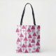 Den här väskan har en konsthantdesign av trianglar som är uppspända på linjer i två skuggor av rosa.