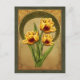 En dekorerad konsthantbakgrund med tre röda och gult-tulpaner. Anpassa den här designen för alla tillfälle, som födelsedagar, årsdagar, vår hälsning eller mer!