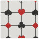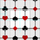 Den här strukturen har en Art Deco-inspirerad originaldesign med ett kortuppspelningstema bestående av ljusröda och svarta kort-symboler (kostym, klubb, hjärta och spade) centrerade där det svarta tjocka och tunna vågrät och lodrät linjer i ett rutnät möts, med en stor anpassningsbar fält för ditt monogram i mitten.
