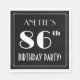 Den här snyggten och de tjugonio-årsjubileet inspirerade till åttiosjätte födelsedagsfirandet papper napkin-design har en personlig namn, ett finare art deco-utseende med inspirerat nummer "86:e", budskapet "FÖDELSEDAGSFEST!" och ett gräns med flera linjer. Bakgrunden är färgad svart som standard, men kan anpassas till ett annat färg om så önskas. Sådana här luxuriösa pappra servetter kan användas när man tar emot en födelsedagsfest till någon i firande på deras åttiosjätte födelsedag. [~Z0000612]