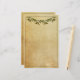 Artdekopapper för Vintage pappert dekorerat med grönt, vackert skrivpapper för vintage med ursprunglig dekoration för vattenfärg i Art Deco stil - tunt och smalt, glatt löv för grönt vävs in i ett ursprungligt garland. Baksidan av papprare är dekorerad med en andedräkt av samma tunna löv