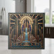This exquisite ceramic tile captures the glamour and geometry of the Art Deco era, featuring bold architectural forms and radiant metallic accents. Stylized skyscrapers, sunbursts, and waterfall motif in shades of gold, teal, bronze, and deep sapphire create a sense of opulence and motion. Perfect for accent walls, decorative panels, or tabletop insets, this richly detailed design adds vintage sophistication and modern luxury to any space. Search ID1196 to see all of the designs available in this Art Deco set. Note: design contains generative content.