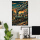 All aboard the "Western Express," a stunning visual journey where industrial power meets Art Deco elegance. This premium poster features a beautifully stylized steam locomotive chugging through a rugged desert landscape, framed by geometric mountains and saguaro cacti. The design is defined by intricate patterns in the smoke trails and the locomotive's body, rendered in a sophisticated palette of deep teal, weathered bronze, and golden sunset hues.