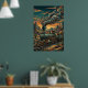 Art Deco Western Express Train, Geometric Wall Art Poster