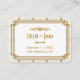 De här platskorten har en vit palett och guld färg, ett geometriskt ram, geometriskt mönster och andra stilistiska detaljer som alla inspireras av Art Deco och de kommande 20 åren. Du kan anpassa exempeltexten till fält.
