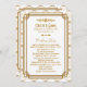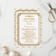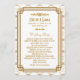 De här bröllopsprogrammen har en vit palett och guld färg, ett geometriskt ram, ett geometriskt mönster och andra stilistiska detaljer som alla inspireras av Art Deco och de kommande 20 åren. Du kan anpassa exempeltexten till fält.