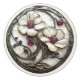 Gorgous Art Deco-keramisk knopp med vita glasblommor med röda rubyaccenter, omgivna av en vacker metall, Art nouveau ram. TRYCKT BILD INGEN FAKTISK MOR AV PEARL, STAINERAT GLAS, GEMS ELLER GULD METALL