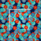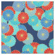 Ett baserat art décomönster på ett traditionellt stylized chrysanthemummönster som används i japanska textilar, skuggar in av blått, turkos och ljust rött, skisserat i guld, på en mörk - slösa bakgrund