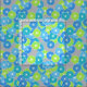 Ett baserat art décomönster på ett traditionellt stylized chrysanthemummönster som används i japanska textilar, skuggar in av blått-, turkos- och limefruktgrönt som skisseras i vit, på ett ljust, silvergrå färgbakgrund