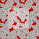 Art décoblommamönster - vit på rött tyg
