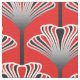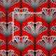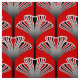 Tyg i en reproduktion av stylized, art décolilja, tapetmönster - en lutning av ljusa silvergrått/grå färg till den mörka grafiten, betonade med svart, på en djup kinesisk röd bakgrund