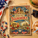 Celebrate the Fourth of July with timeless elegance in this Art Nouveau–inspired Independence Day design. Featuring flowing ornamental details, Lady Liberty, bald eagles, American flags, fireworks, the Liberty Bell, and the U.S. Capitol, this artwork blends historic symbolism with rich vintage charm. The warm red, cream, and blue palette and intricate linework evoke early 20th-century poster art, making it perfect for classic patriotic celebrations.