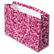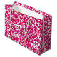 Stora presentsäckar i mönstren William Morris Art nouveau av exotiska fåglar i ett träd av granatäpplen, med fuchsisk rosa och violett löv, fåglar och frukt i fuchsia och orchid rosa på vit bakgrund