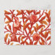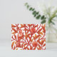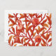 vykort i ett mönster av exotiska fåglar i ett pomegranat träd i i William Morris Art nouveau, med djup mandarin och korall orange löv, fåglar och frukt i orange och vitt, och en gräddvit bakgrund