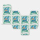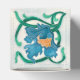 Det här är en bild av en gammal vintage Art nouveau-plattor med en blå blomma med gult, grönt och löv på vit bakgrund.