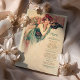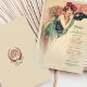 Den här fantastiska menyn i bröllop ger en fantastisk illustration av Art nouveau på en vintage dam som är försedd med en blommigt krona och klädd i en grönt av elegant. Konsten är en perfekt som återspeglar tidigt 1900-talets utformning, med invecklade detaljer och flytande linjer som framkallar en känsla av nåd och sofistikering. De varma toner av mjuk , sage grönt och blommigt rött, i kombination med det delikatformerade inslag, gör att den här menyn är ett perfekt val för en vintage eller ett naturinspirerat bröllop. Baksidan av menyn fortsätter temat Art nouveau med ett enkelt botaniskt emblem i jordrött och grönt mot en gräddbakgrund med elegant. På den här menyn får du ett litet klassiskt elegans och romantiskt arv till din bröllopsmottagning, som erbjuder både stil och funktioner.