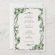 Den här krävande bröllopsinbjudan är ett testamente till stil i Art nouveau, med elegant Calla lilies som vind upp på kortet i en visning av naturskönhet. Vattenfärgen påverkar ge till de varierande nyheterna av jade, grönt av skog och blek, sammanvävda med gräddvita blommor som verkar blinka mot den skiftande bakgrunden. Detta inbjudningsprogram är perfekt för par som uppskattar konst- och naturfusionen, med en viss sofistikering som lånats ut av de kurvilinära formerna och de organiska motiven som kännetecknar rörelsen Art nouveau.