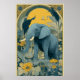Denna blå och gula Art Nouveau-cirkusaffisch är en av en uppsättning om 4 (var och en såld separat). Den visar en elefant som uppträder.