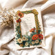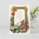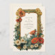 En skarp och glatt bröllop-design med ett gyllene Art nouveau ram, med blommande daisy och gerberablommor. Blommigtens sammansättning i rikens skugga av elfenben, orange, rött och grönt framkallar en solupplyst trädgårds värme, blandar vintagens elegans med en glad charm. Perfekt för vår eller sommar-bröllop med ett naturligt, romantiskt tema.