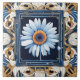 Art nouveau Deco Blue White Gerbera Daisy Flower Kakelplatta