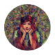 En art nouveau, konst deco-vintage som illustrerar en gammal, rödhårig kvinna som ramlade med fjädrar i häktet En vintage i elegant som illustrerar en klassisk skönhet.