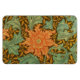 Härlig utsmyckad konstnärlig vintagekonstdesign som presenterar orange singel-stem blommor och gröntlöv mot ett blom- bakgrundsmönster.