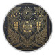 Add a touch of cosmic elegance to your home with this stunning celestial sun design. Featuring intricate botanical illustrations and a radiant sun motif, all rendered in a luxurious gold foil effect against a deep black background. This unique design evokes a sense of celestial wonder and natural beauty, perfect for adding a sophisticated and mystical flair to any piece of furniture. Its detailed linework and symmetrical patterns make it a true work of art, bringing an element of enchanted garden to your decor.