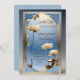 Brölloportets utformning utstrålar en god elegans med dess konstinspirerade stil. Den har en delikat guldram som på ett skickligt sätt beskriver en blå bakgrund med mjuk övertoning, vilket ger en lugn känsla. Centerbiten består av raffinerade, gyllene lotus blommor som växer från en reflekterande vattenyta, symboliserar renhet och nya början. Den harmoniska blandningen av guld och blått skapar ett sofistikerat och tidlöst estetiskt, vilket gör det till ett perfekt val för ett graciöst och romantiskt bröllop. Anpassa texten om namn och detaljer om bröllop. Du kan ladda ned kortet till din mobila enhet eller dator. Jag utformade kortet med hjälp av generativ hjälp.