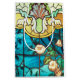 Ett glasfönster i nedfläckaden art nouveau med stil med en slutprodukt och blommor på träd grenar. En elegant. I färg av blått, rosa, grönt och guld