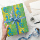 Denna pappra inslagning av stil i art nouveau har en pulserande turkos och blåblåvitor mot bakgrund av gult guld och orange damm. Image AI genererad.
