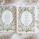 Bygg upp den tidlösa elegansen i Art nouveau-eran med denna mycket designade bröllopsinbjudan. Kortet är försett med ett symmetriskt ram av handmålade vattenfärgade blommigtar i mjuka skuggor av periwinkle blue, lavender och rosa, som lätt sammanflätas med flödande gröntar. Dina uppgifter om bröllop presenteras på ett vackert sätt i en klassisk ovalform, accentuerad med ett känsligt faux guld gräns. Den här konstnärliga och romantiska utformningen är perfekt för ett sofistikerat trädgårdsbröllop, ett vintage-temat firande, eller för ett par som vill ha en aning klassiskt, konstnärligt flust. All text, inklusive monogrammet, är helt anpassade för att perfekt tillkännage din speciella dag.