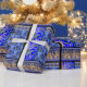 Art nouveau blommigt, bambu och svart iris-platta. I rik färg av blått, svart, turkos och guld. Fet och sofistikerad.