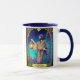 Mug in an interpretation of the Major Arcana card "The Hermit", a robed figure holding a lantern and staff, symbolizing introspection and wisdom. The background of a starry night sky with lush, colorful foliage gives a mystical, Art Nouveau aesthetic.