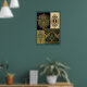 A collage of artistic, art nouveau prints by Christopher dresser. A mixture of arts and craft style , Victorian and art nouveau textile prints. Bold and elegant. In colors of black, gold and green.