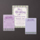 This elegant Art Nouveau details card is bordered by intricate tiles of lilac and lavender thistle. The decorative floral announcement text color can be changed to meet your needs.