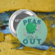 Sprid goda vibrationer vart du än går med den här Peas Out-knappen. Med en glad grön ärt som visar upp en fredstecken levererar denna lekfulla design positiv energi med en nypa humor fylld av pun.