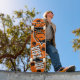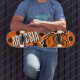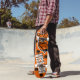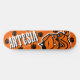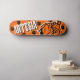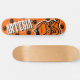 Skateboard för orange, svart och vit Artesia Bulldog med stora maskor, kedjor, tass avtryck och ARTESIA-bokstäver. (När den här bulldog visas utan min upphovsrätt till Skyrider Designer, är den stulen grafik.)