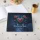 Artfullt designat gotskt hjärta bestod av intrikat mönster och elegant förnimmelser. Hjärtat exuderar ett romantiskt mörker som symboliserar parets eviga kärlek. Två stiliserade kråkor infogas i bakgrunden, nästan som om de blandas in i den blå nyansen. Deras silhuetter är elegant och mystiska och ger extra en dimension till utformningen. Kråkorna kan lutas något, som om de vaktar paret eller bevittnar deras kärlek.