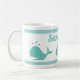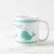 Artic Teal Blue Whale & vågar Blue & White Border Kaffemugg