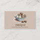 En chokladkakas affärskort med en målad yummy tittar chokladskål och ett unikt dekorativt typsnitt för ditt företag namn. För chokladtillverkare, tryffel och andra konfektioner. Lägg till din egen beskrivning på kortets baksida. Du kan också välja mellan våra typsnitt och ditt eget färg-estetik.