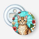 Artistic Feline Portrait Amid Tropical Flowers Flasköppnare