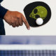 Serve up some intergalactic style with this unique ping pong paddle featuring an artistic green alien head on a bold black background. Whether you're playing competitively or just having fun, this paddle combines performance with personality.