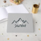 Artritat bergsområde, anpassbart monogram. Vector ritade berg i grått blue färg med ett personlighetsdugligt monogram och ditt namn. Underbar gåva från någon som kärlek bergar.