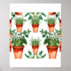 Museum-quality art print. Arts and Crafts movement pattern with intricate botanical details and symmetry depicting kitchen herbs in terracotta pots, created with watercolor bleeds and organic edges. Frame not included.