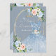 ArtsApp quinceanera-inbjudan - mousserande dammig blå gryga, rosa och dammblått ro, dammig blå eukalyptus blad och vita daisy sprinklade med damm från guld. Står i guld damm. Alla inslag kan redigeras. Copyright © 2023 ArtsApp™. Alla höger reserverade.